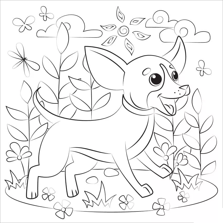 : Druckbar herunterladen Happy Chihuahua Dog Malvorlage