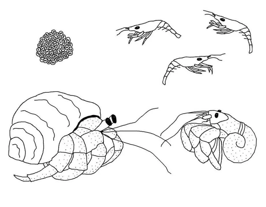 : Druckbar herunterladen Hermit Crabs and Shrimps Malvorlage