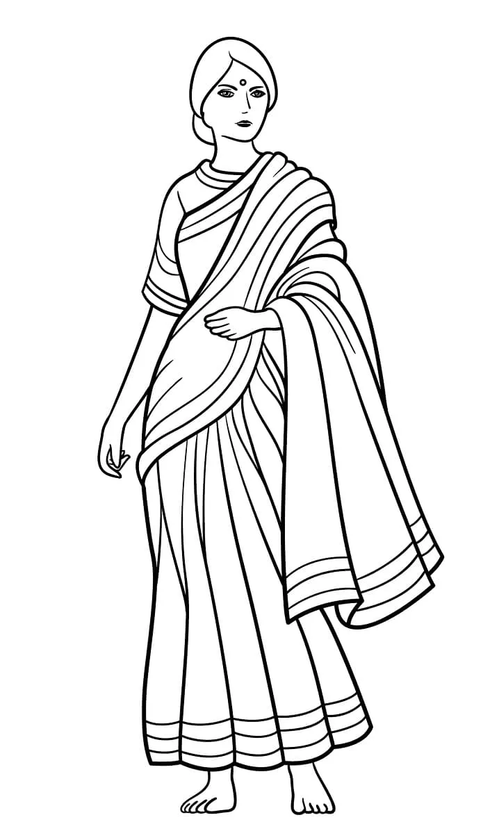 : Druckbar herunterladen Indian Woman in Sari Malvorlage