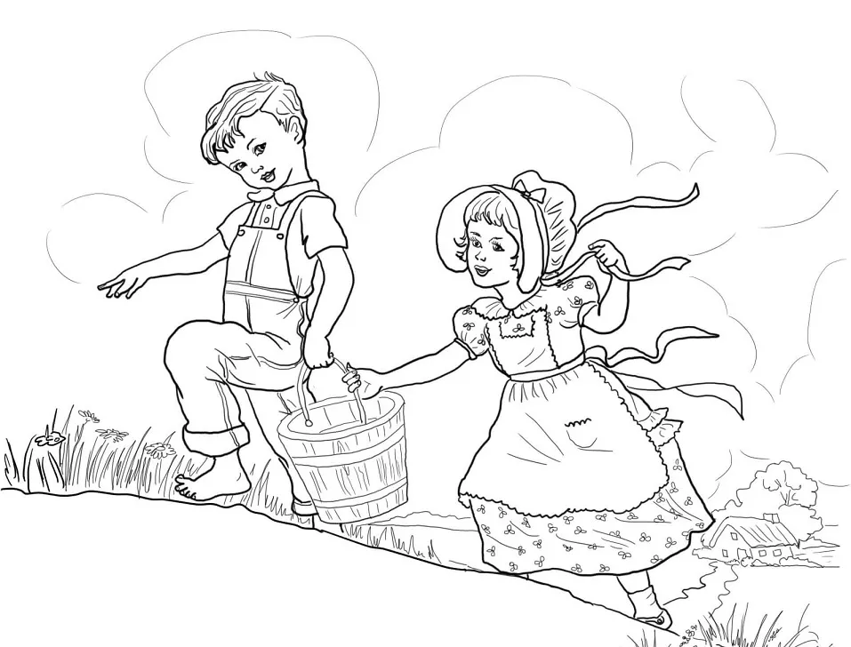 : Druckbar herunterladen Jack and Jill Nursery Rhyme Malvorlage