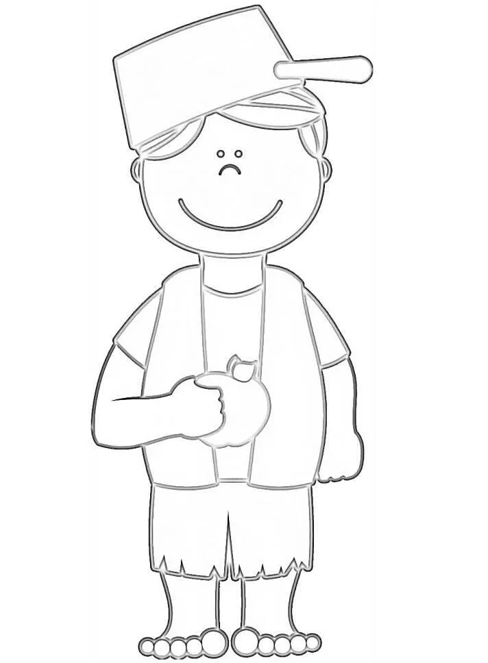 : Druckbar herunterladen Johnny Appleseed Holding an Apple Malvorlage