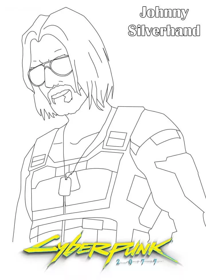 : Druckbar herunterladen Johnny Silverhand Cyberpunk 2077 Malvorlage