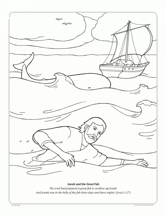 : Druckbar herunterladen Jonah Swimming Malvorlage