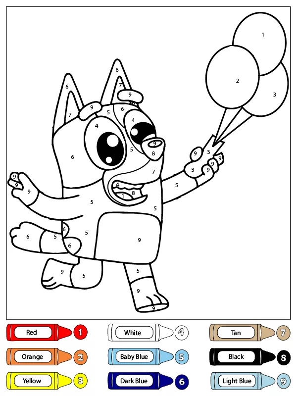 Beschreibung der Färbung : Druckbar herunterladen Blaues Halten von Luftballons Malen nach Zahlen Malvorlage