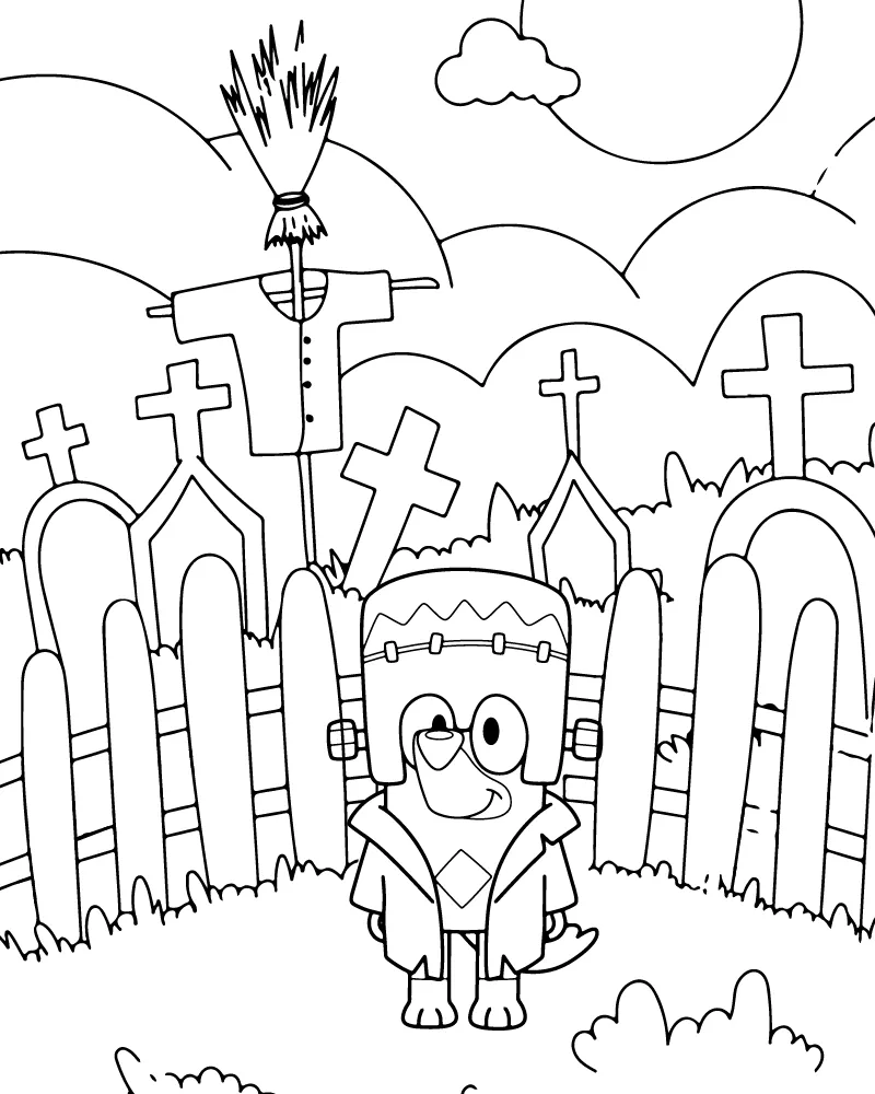 : Druckbar herunterladen Blauer Frankenstein Halloween Malvorlage