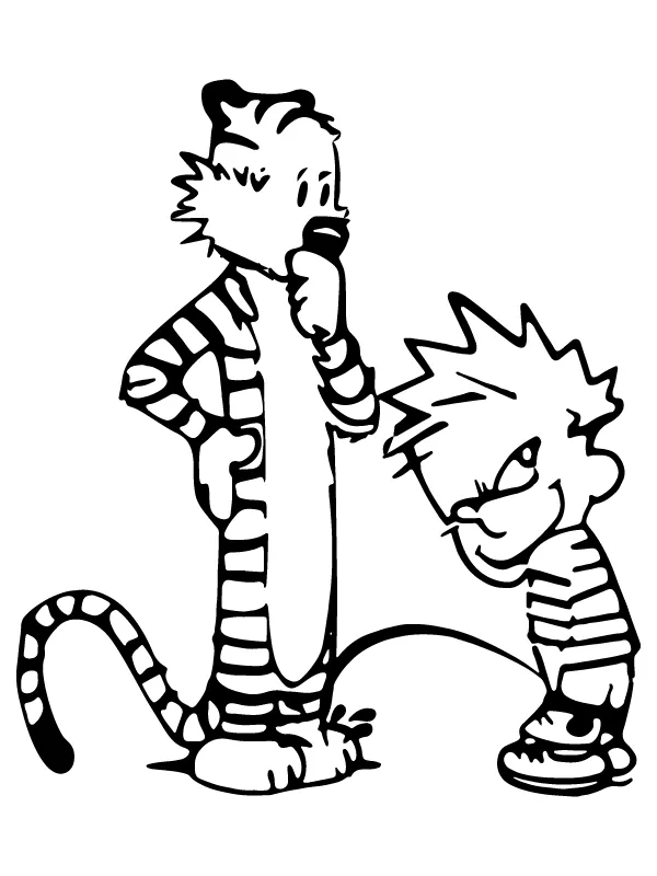 : Druckbar herunterladen Hobbes und Calvin pinkeln Malvorlage