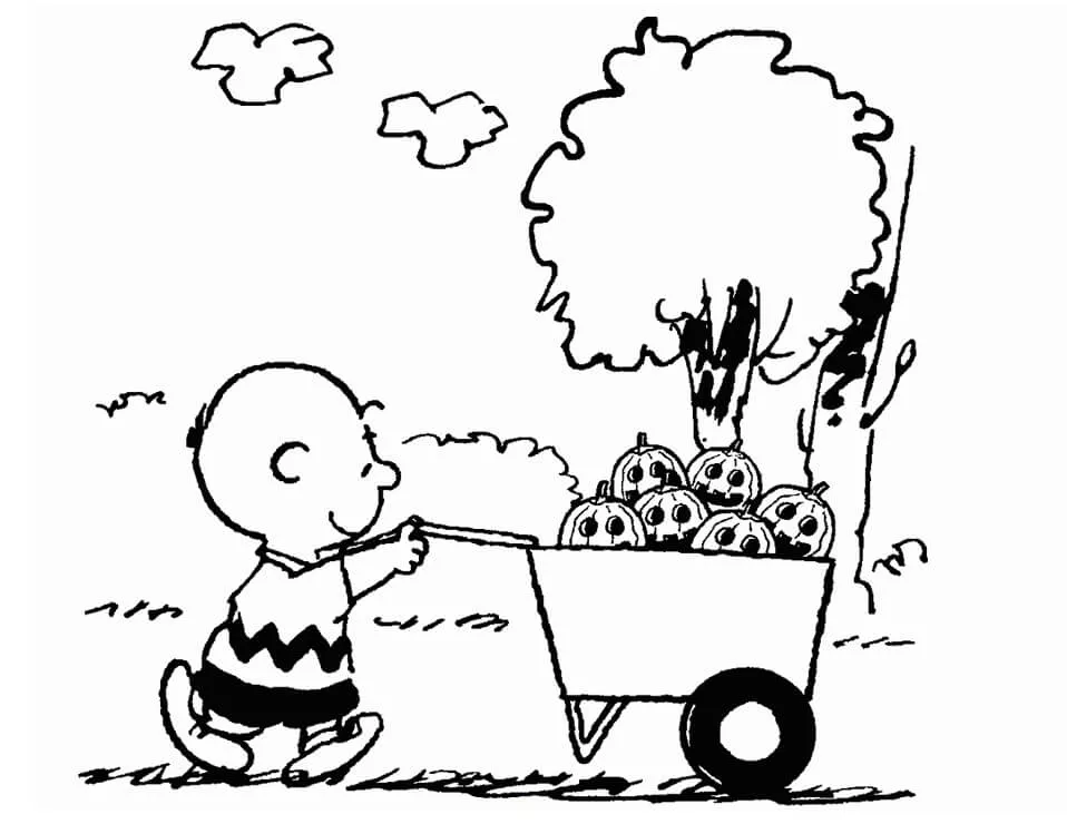 : Druckbar herunterladen Charlie Brown und die Kürbisse Malvorlage