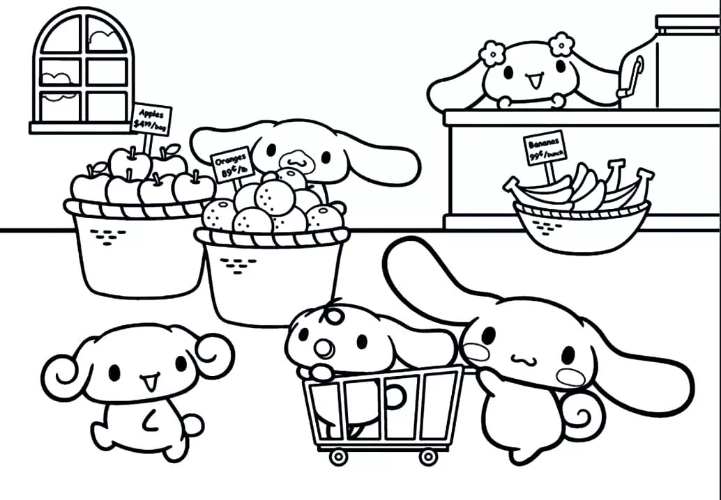 : Druckbar herunterladen Cinnamoroll Markt Malvorlage