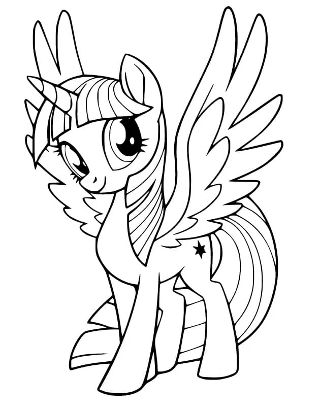 Klicken Sie auf die Schaltfläche Twilight Sparkle mit Flügeln Malvorlagen, um die Druckversion anzuzeigen oder online auszumalen (kompatibel mit iPad und Android-Tablets).