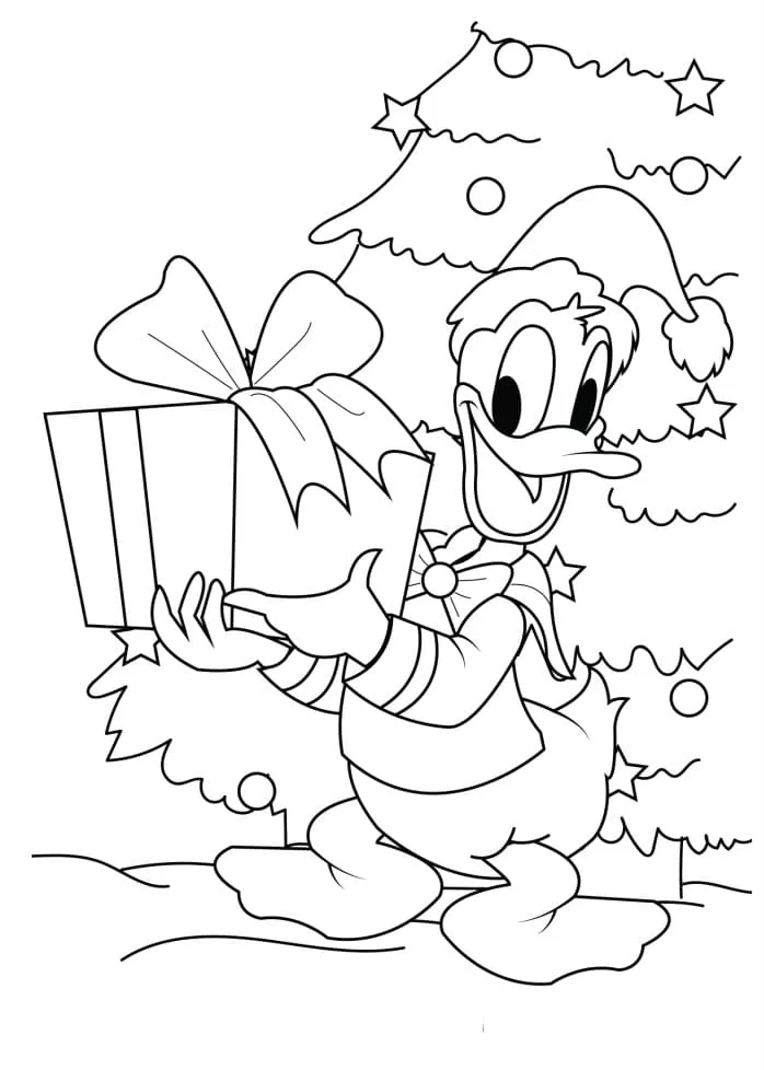 : Druckbar herunterladen Donald Duck Disney Weihnachten Malvorlage