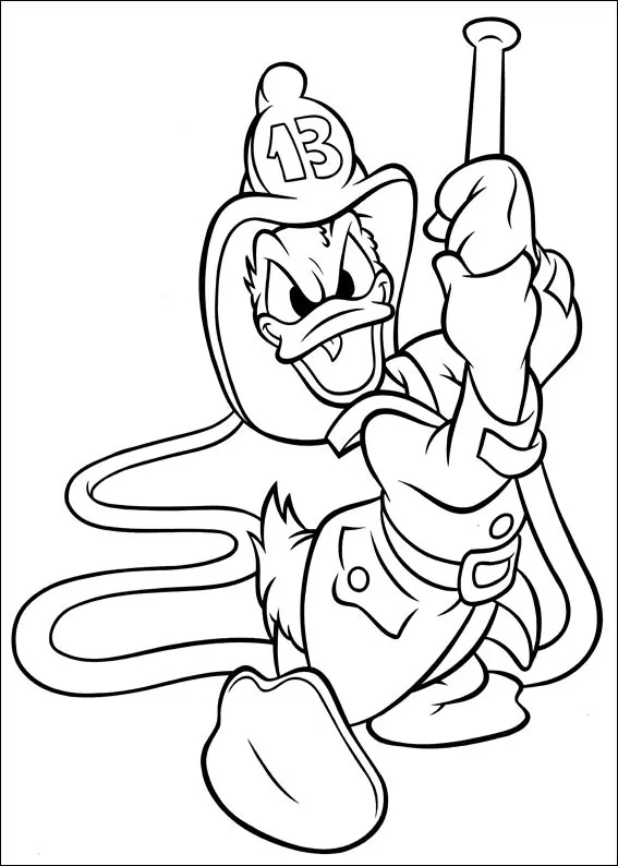 : Druckbar herunterladen Feuerwehrmann Donald Duck Malvorlage