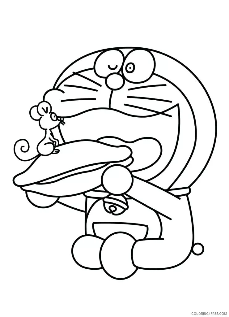 : Druckbar herunterladen Doraemon und Maus Malvorlage