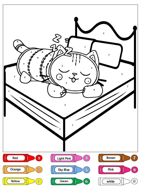Beschreibung der Färbung : Druckbar herunterladen Schlafende Pandy Pfoten Malen nach Zahlen Malvorlage