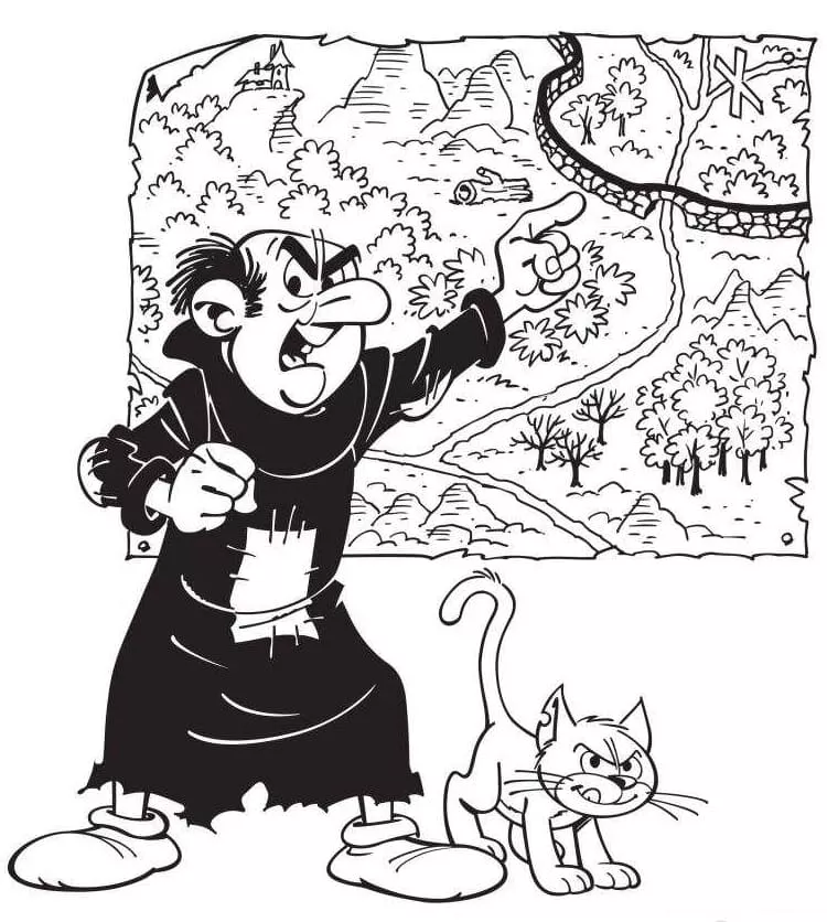 : Druckbar herunterladen Gargamel und Karte Malvorlage