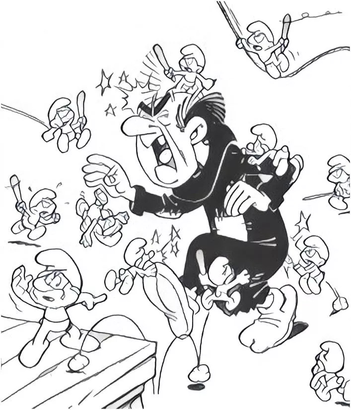 : Druckbar herunterladen Gargamel und die Schlümpfe Malvorlage