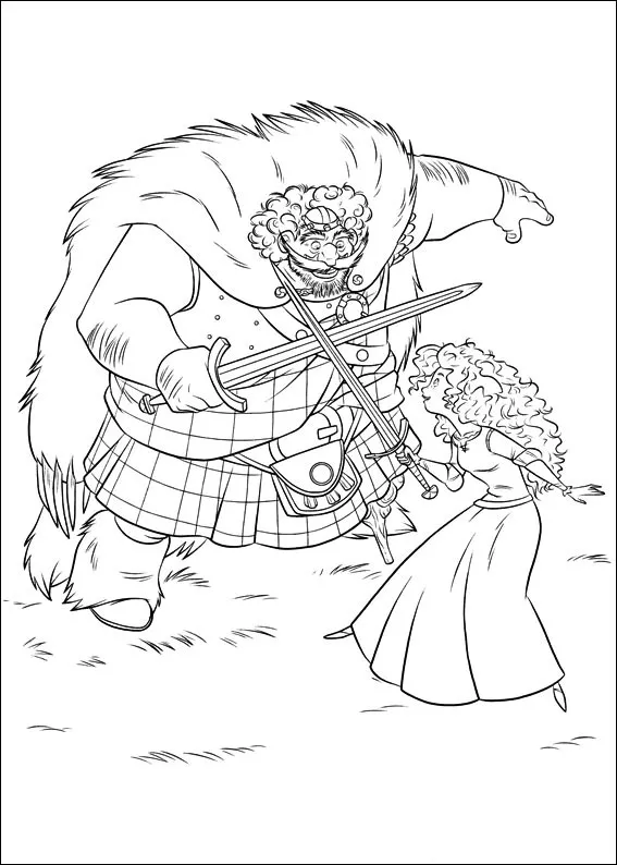 : Druckbar herunterladen Merida Training mit König Fergus Malvorlage
