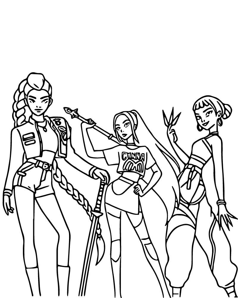 : Druckbar herunterladen Schwarz-Weiß-KPop-Dämonenjäger Malvorlage