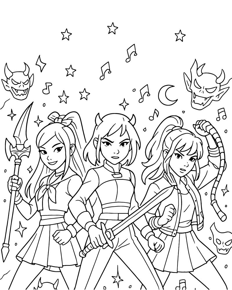 : Druckbar herunterladen KPop Dämonenjäger Malvorlage