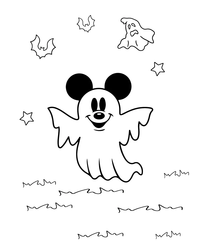 : Druckbar herunterladen Mickey Ghost Halloween Malvorlage