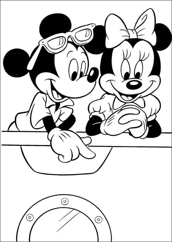 : Druckbar herunterladen Mickey und Minnie im Urlaub Malvorlage