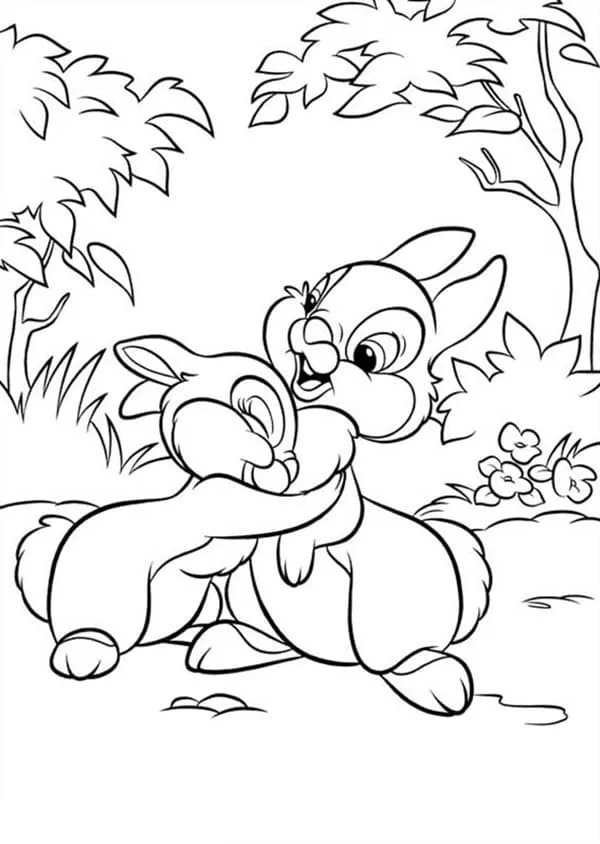 : Druckbar herunterladen Miss Bunny und Klopfer Malvorlage