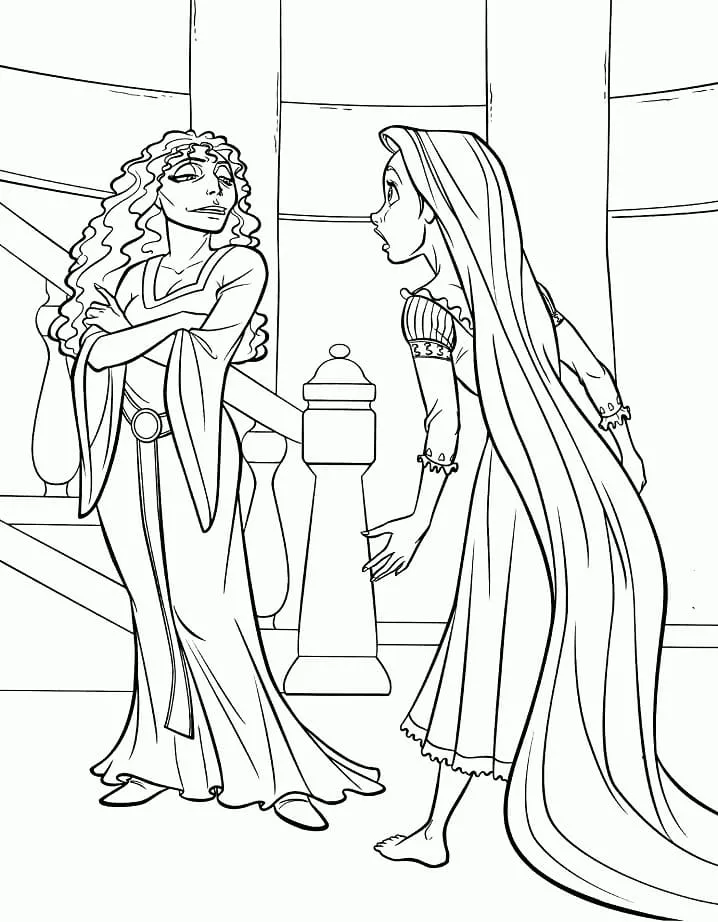 Klicken Sie auf die Schaltfläche Rapunzel und Mutter Gothel Malvorlagen, um die Druckversion anzuzeigen oder online auszumalen (kompatibel mit iPad und Android-Tablets).