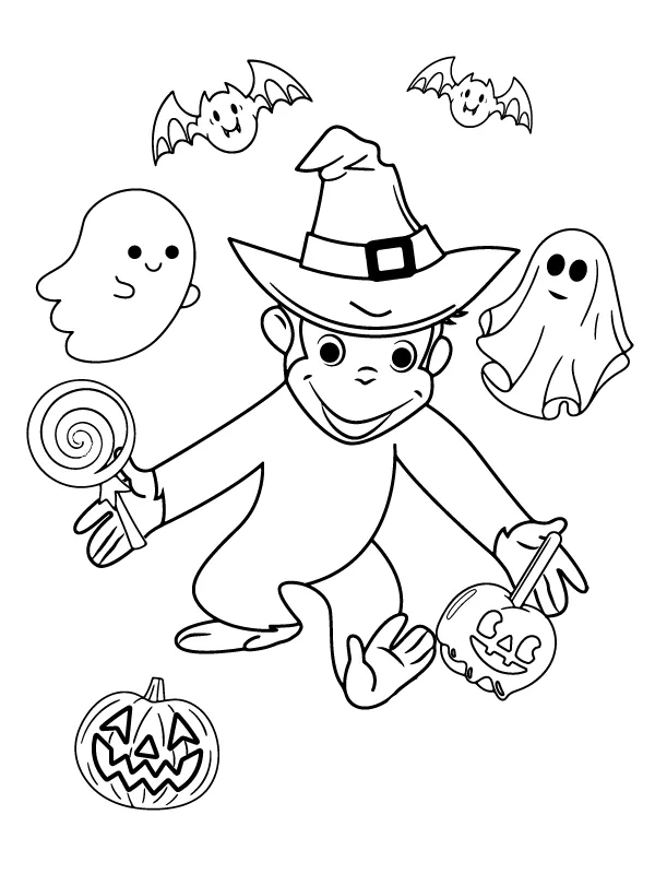: Druckbar herunterladen Kurioser George Halloween Malvorlage