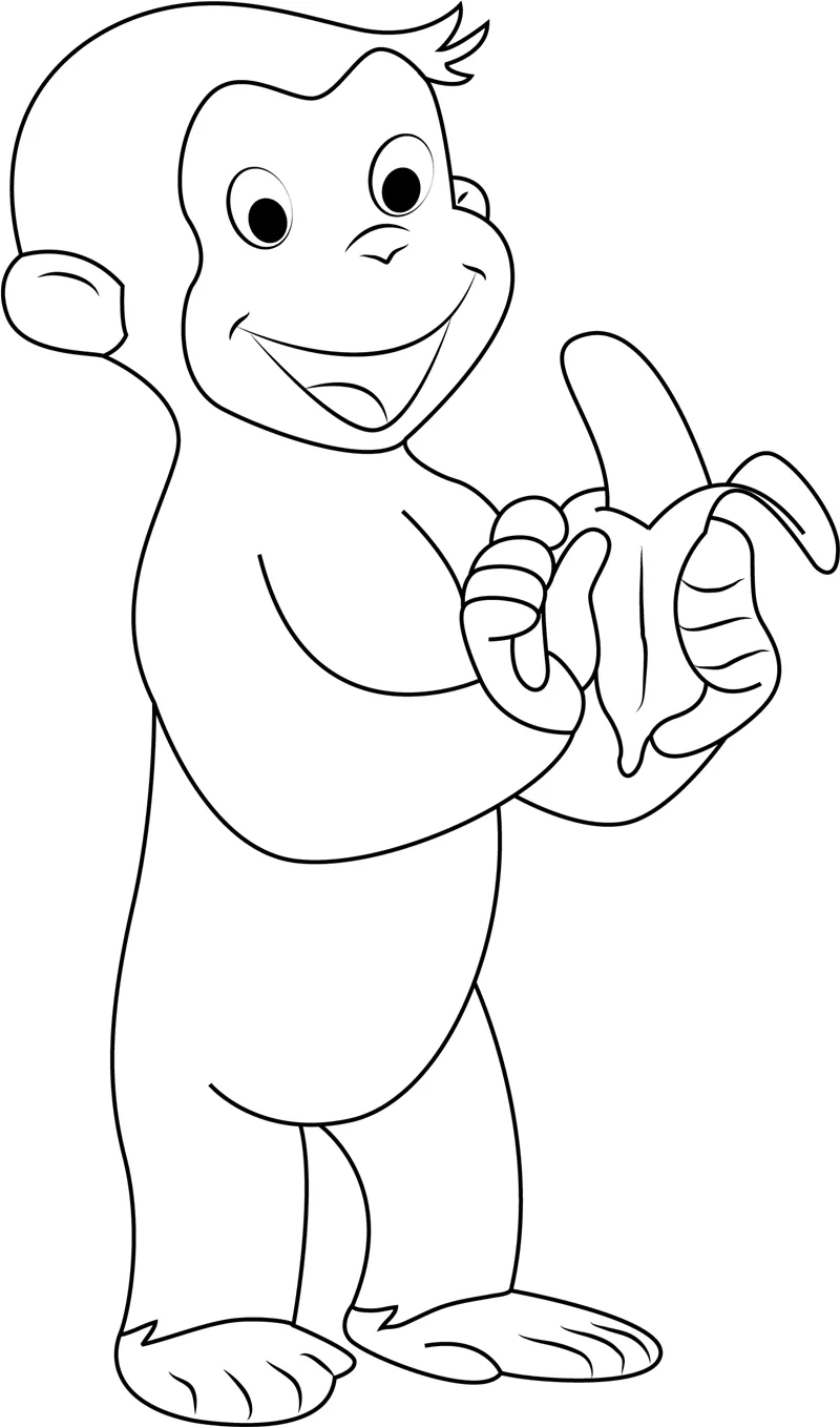 : Druckbar herunterladen Neugieriger George isst Banane Malvorlage