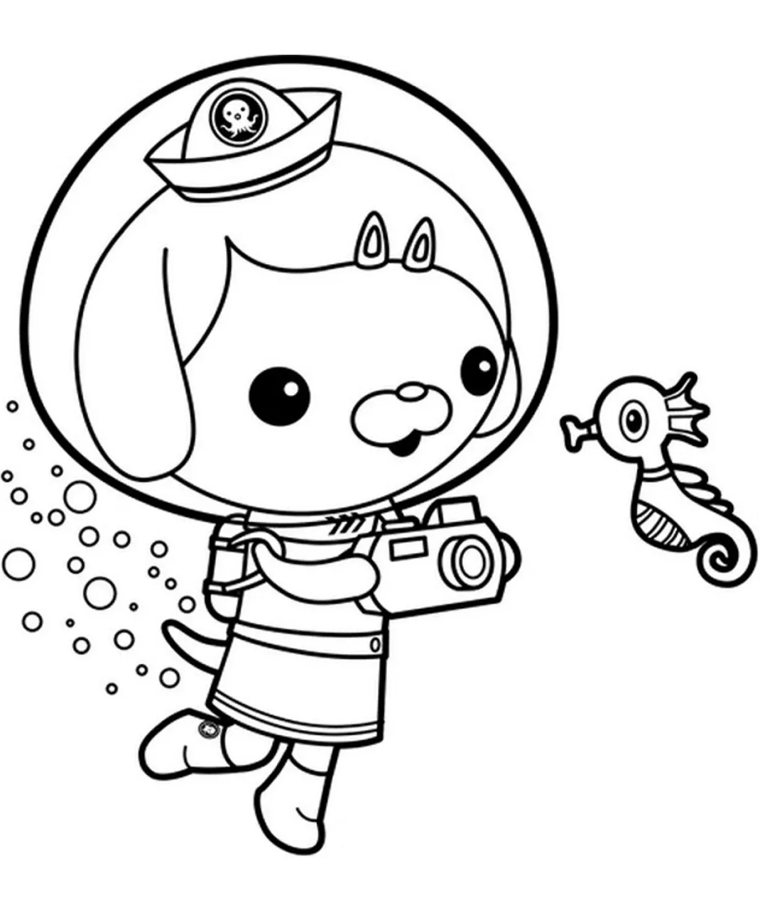 : Druckbar herunterladen Dashi mit Seepferdchen Malvorlage