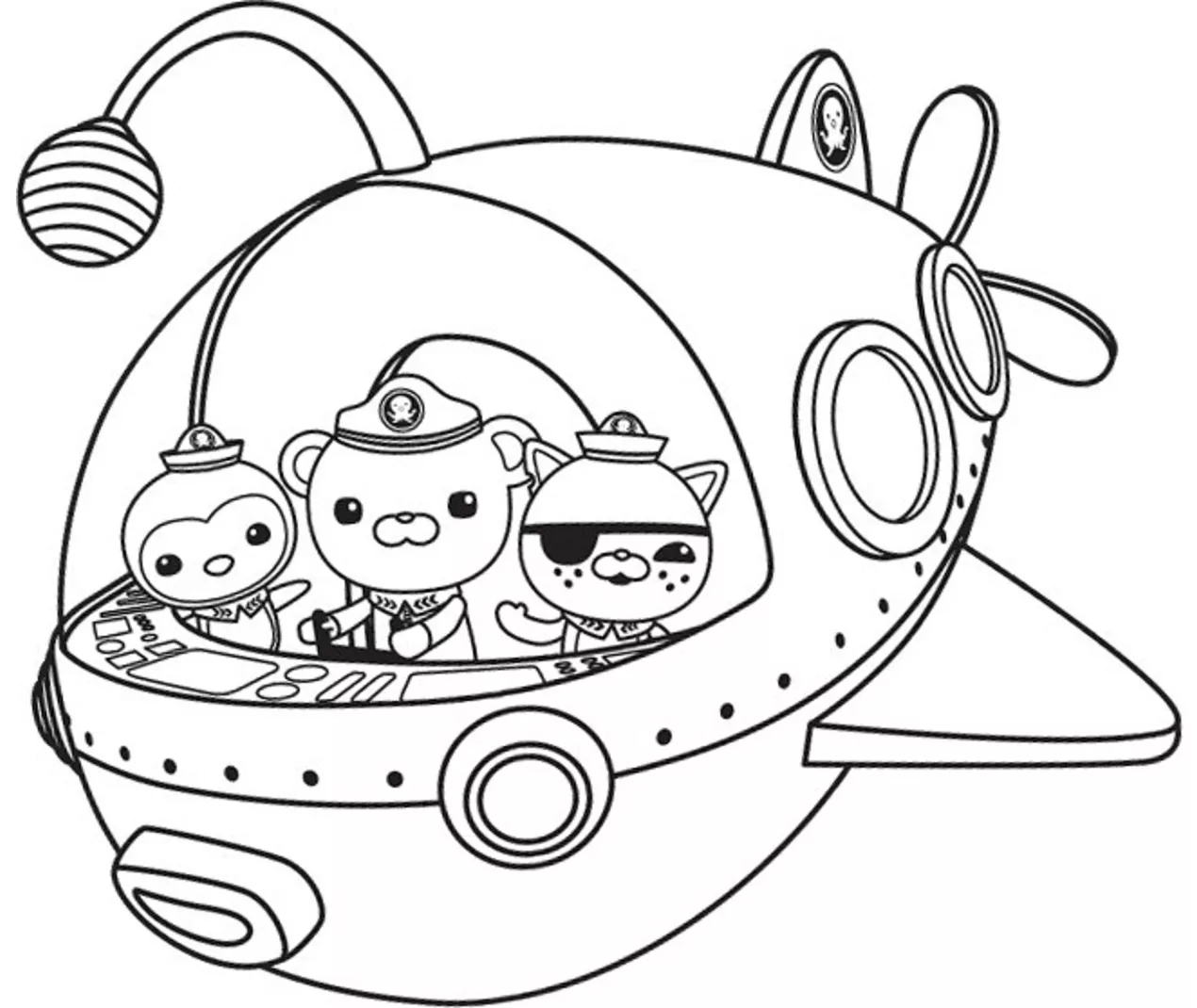 Beschreibung der Färbung : Druckbar herunterladen Peso, Kapitän, Kwazii auf dem Schiff der Oktonauten Malvorlage