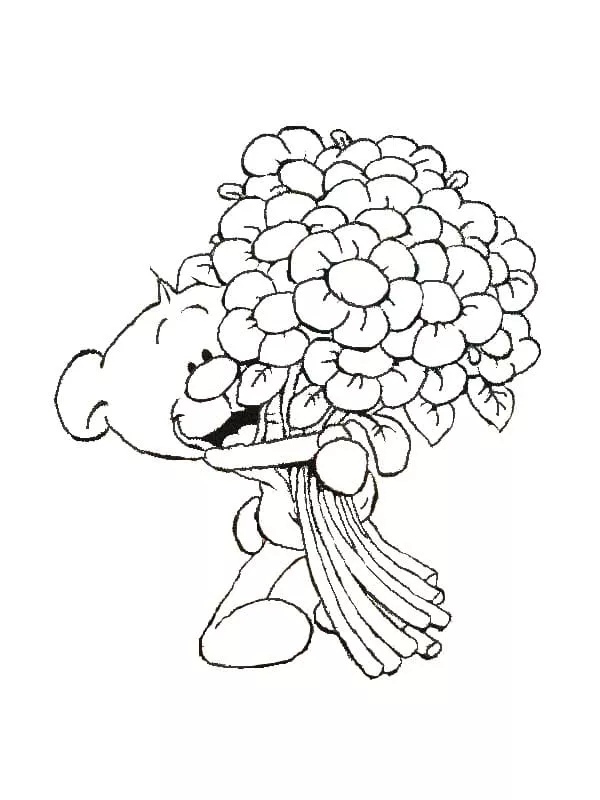 : Druckbar herunterladen Pimboli mit Blumen Malvorlage