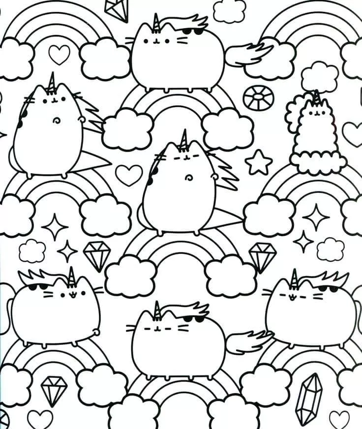 : Druckbar herunterladen Einhörner Pusheen Katzen Malvorlage