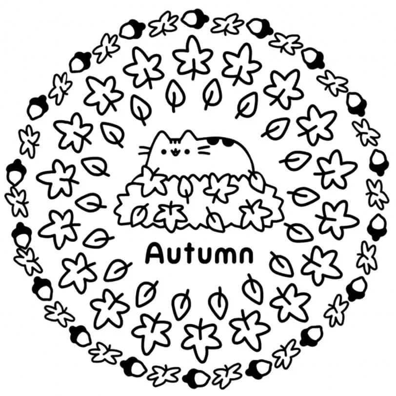 : Druckbar herunterladen Herbst-Pusheen Malvorlage