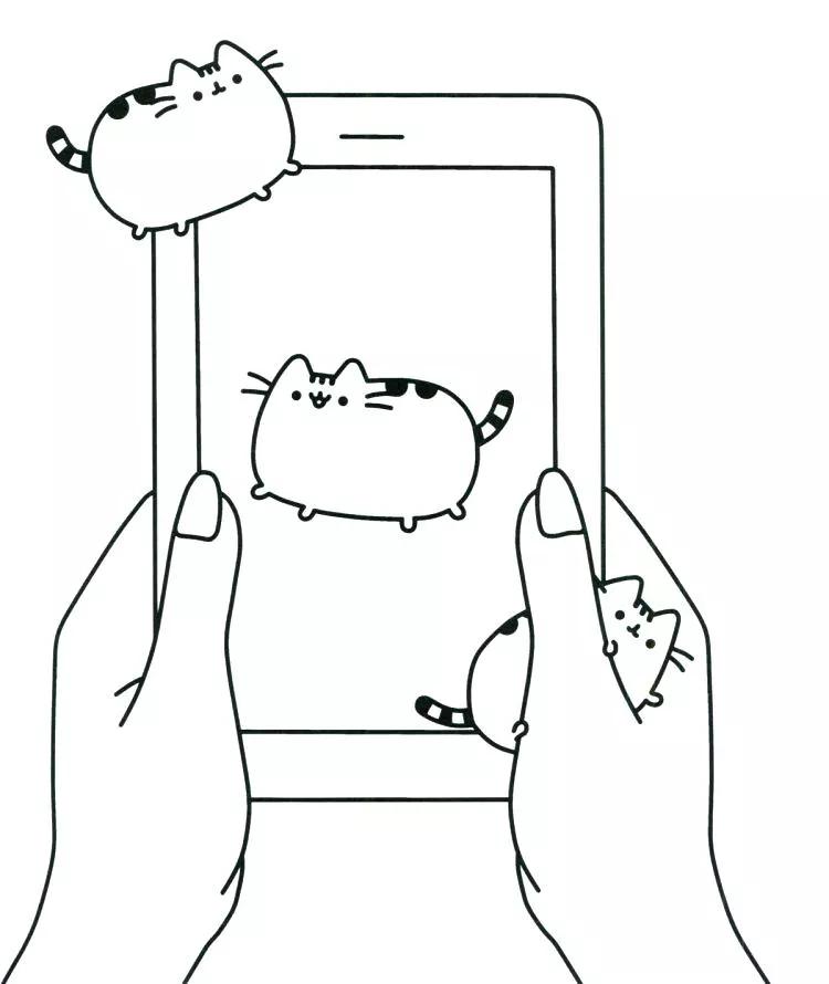 : Druckbar herunterladen Pusheen am Telefon Malvorlage
