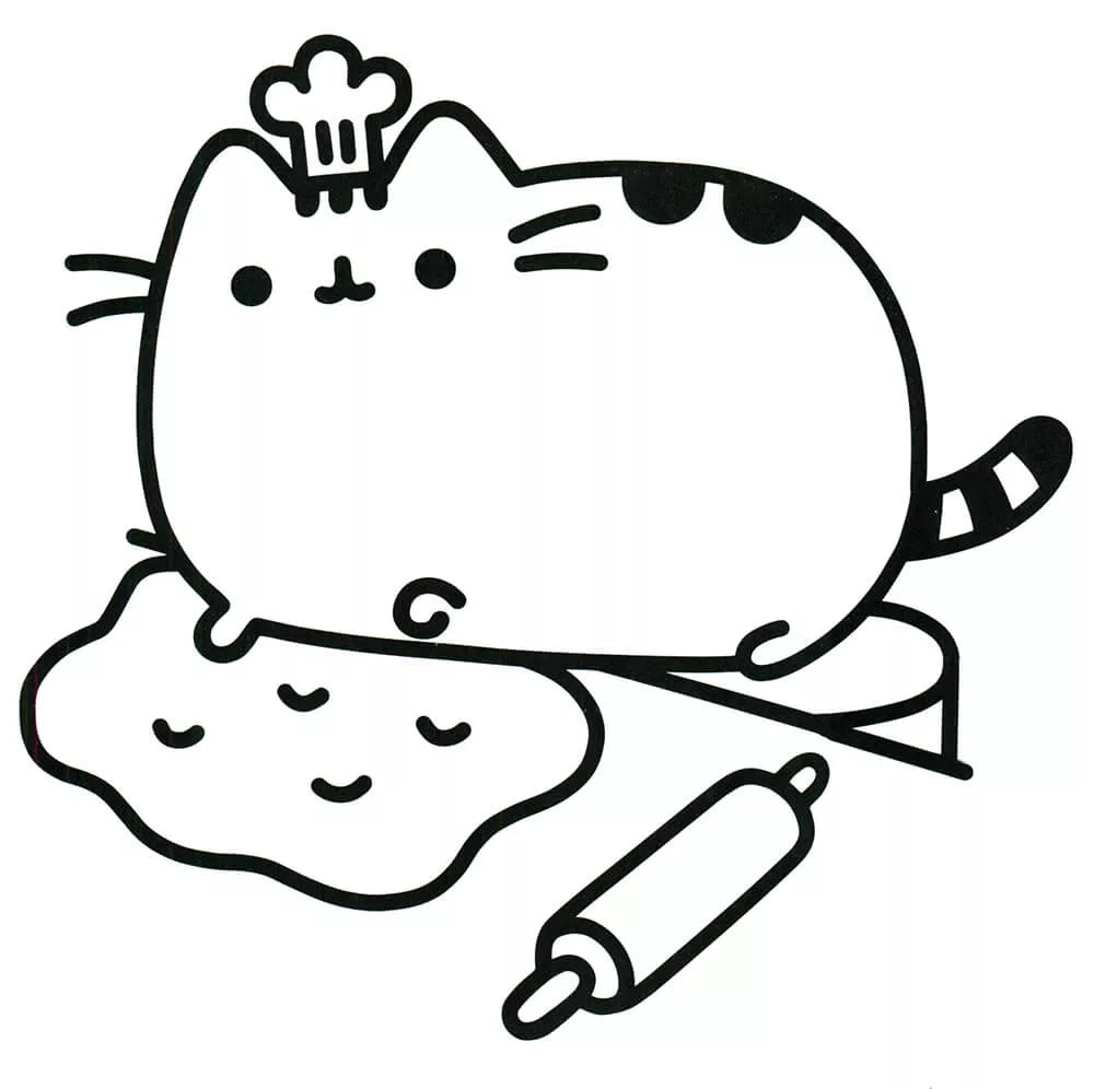: Druckbar herunterladen Pusheen backt einen Kuchen Malvorlage