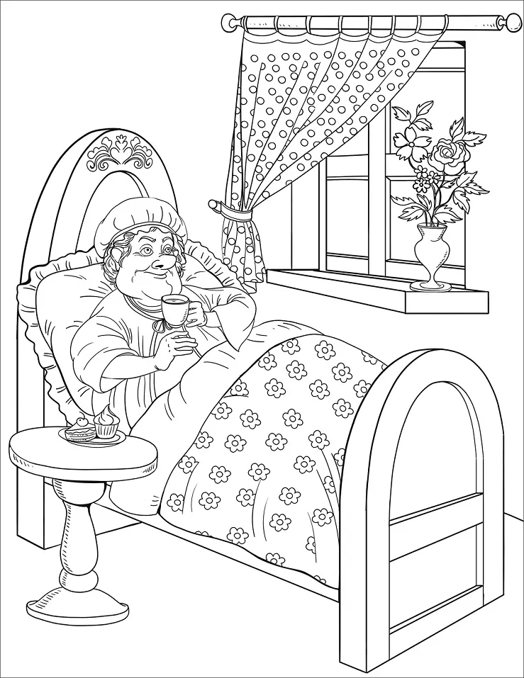 : Druckbar herunterladen Großmutter liegt im Bett Malvorlage