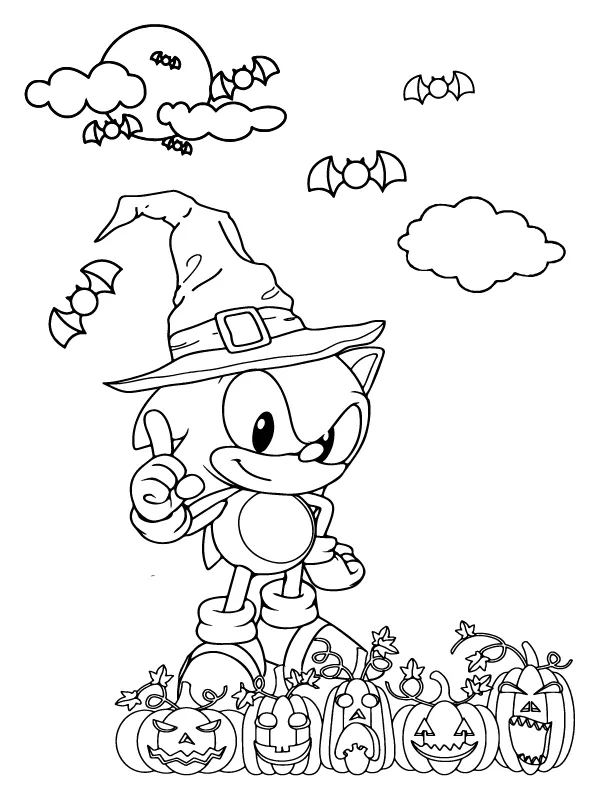 : Druckbar herunterladen Sonics gruseliges Kürbisabenteuer Malvorlage