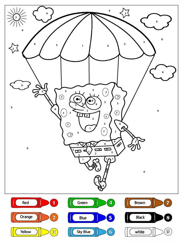 Klicken Sie auf die Schaltfläche SpongeBob Fliegen Malen nach Zahlen Malvorlagen, um die Druckversion anzuzeigen oder online auszumalen (kompatibel mit iPad und Android-Tablets).