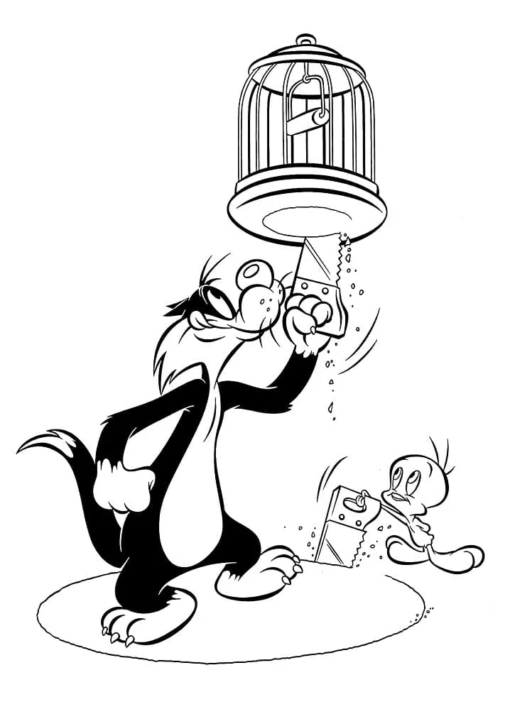 : Druckbar herunterladen Tweety mit Sylvester Malvorlage