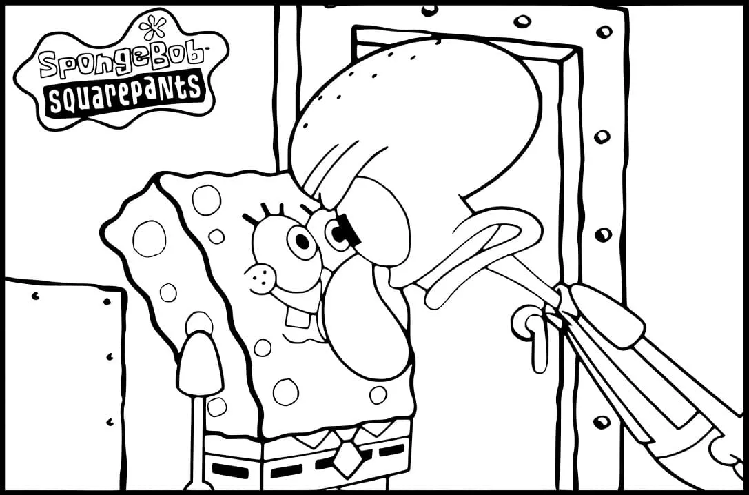 : Druckbar herunterladen Thaddäus und Spongebob Malvorlage