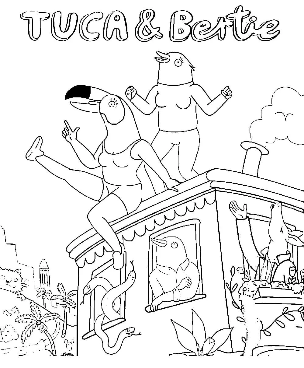 : Druckbar herunterladen Tuca- und Bertie-Charaktere Malvorlage