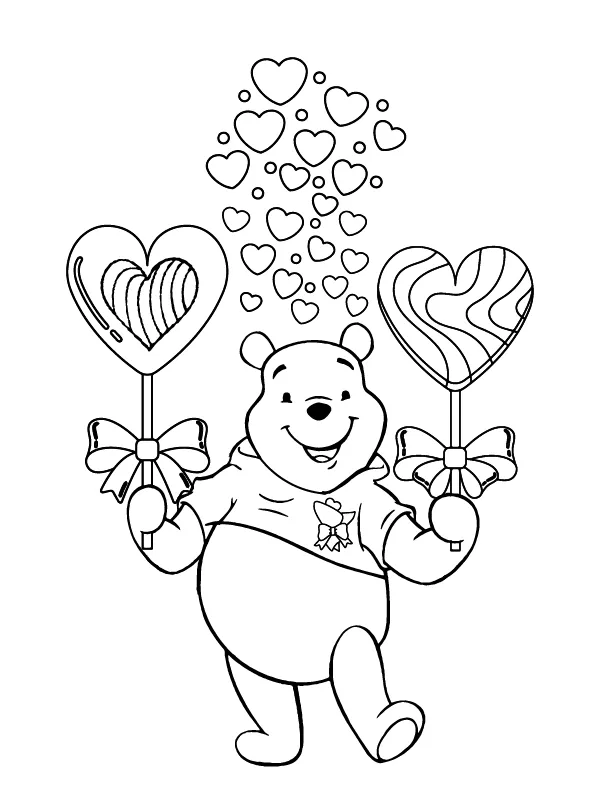 Klicken Sie auf die Schaltfläche Happy Winnie Puuh und herzförmige Luftballons Malvorlagen, um die Druckversion anzuzeigen oder online auszumalen (kompatibel mit iPad und Android-Tablets).
