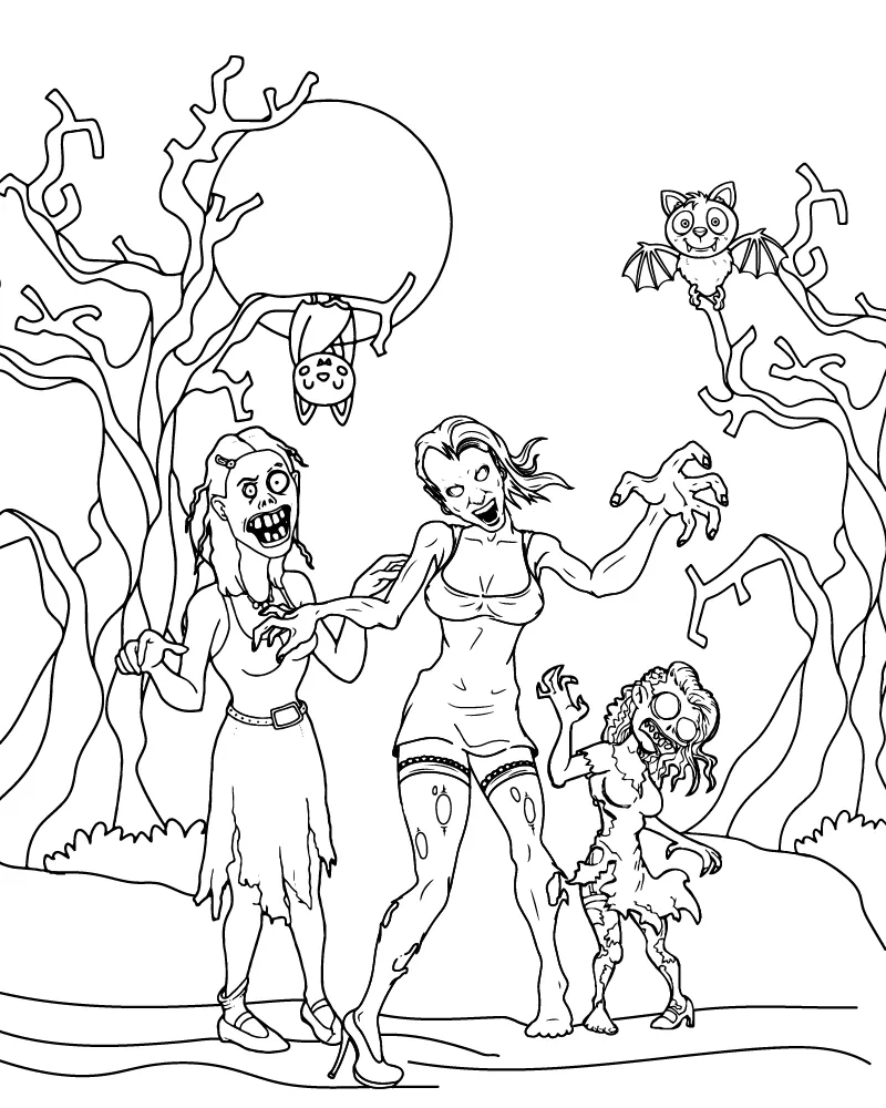 : Druckbar herunterladen Zombie-Mädchen Malvorlage