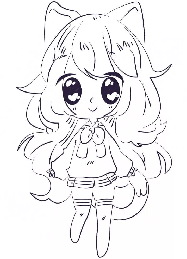 : Druckbar herunterladen Kawaii Anime Girl Malvorlage