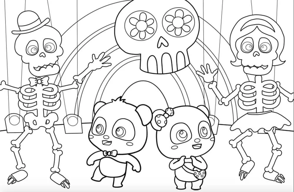 : Druckbar herunterladen Kiki and Miumiu Dancing with Skeleton Malvorlage