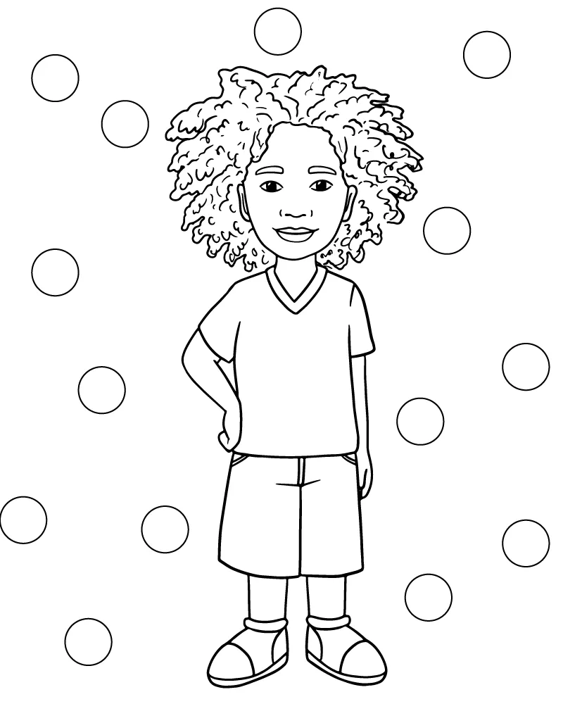 : Druckbar herunterladen Schwarzer Junge mit lockigem Haar Malvorlage