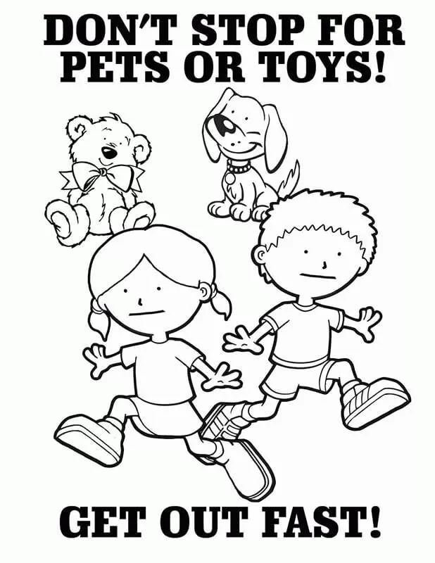 : Druckbar herunterladen Schnell raus Brandschutz Malvorlage