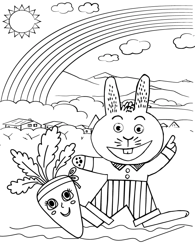 : Druckbar herunterladen Gruseliges Karottenbasteln für Kinder Malvorlage