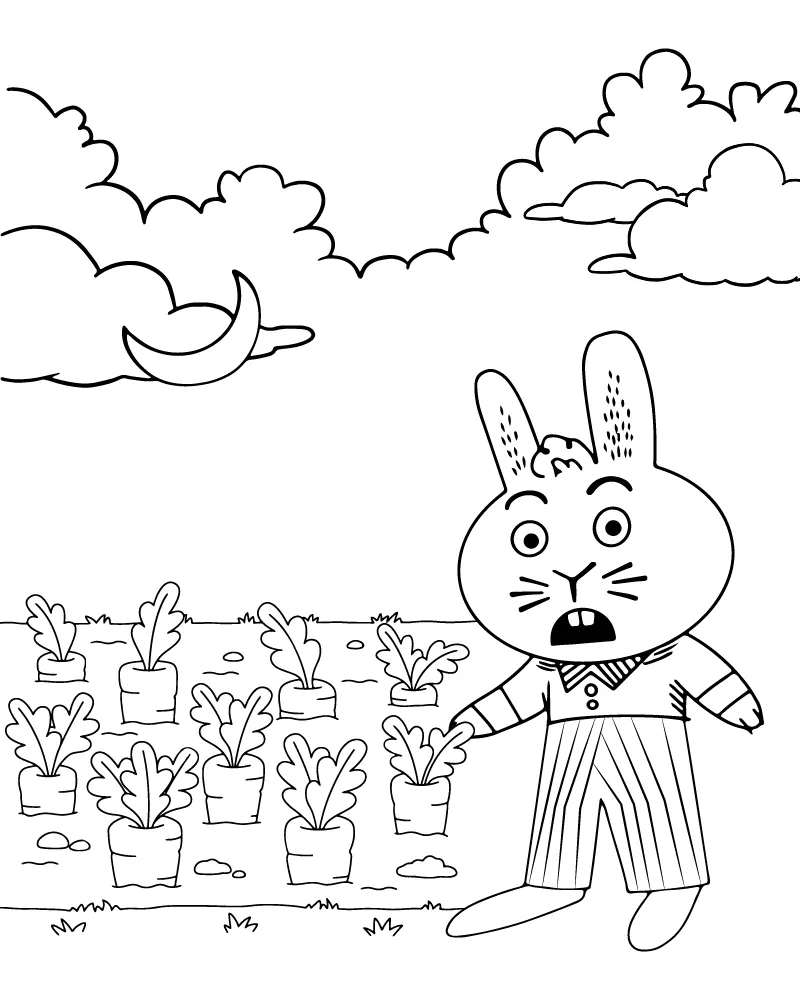 : Druckbar herunterladen Gruselige Karotten-Story-Aktivitäten Malvorlage
