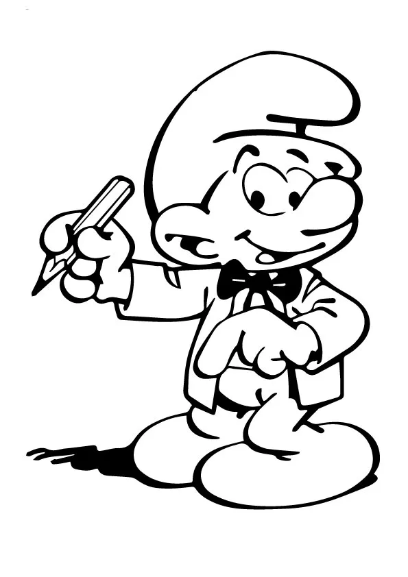: Druckbar herunterladen Schlumpf ist bereit zu schreiben Malvorlage